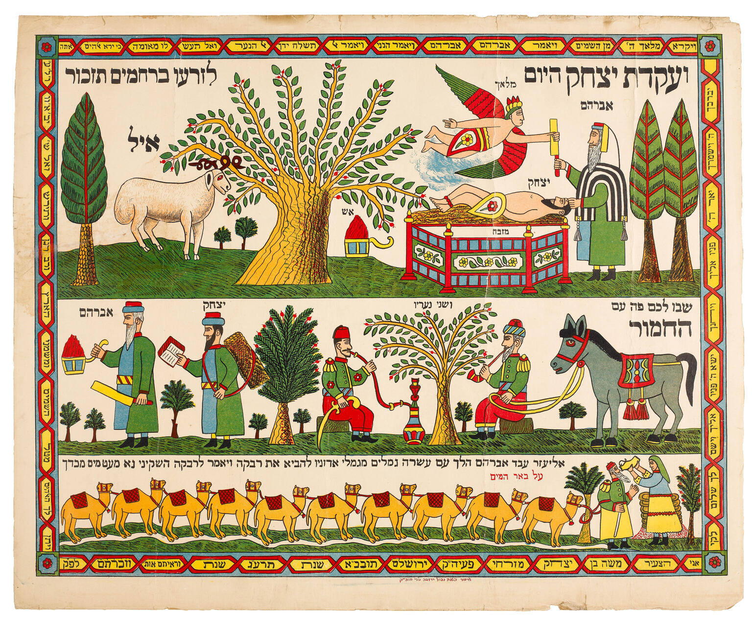 Moshe Mizrachi, Folk Depiction of Akedah Story (Jerusalem: Monsohn, 1913). Courtesy Gross Family Trust Collection.
