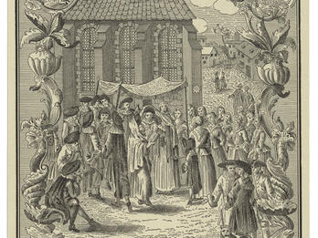 This portrait depicts the first chief rabbi of Great Britain, Aaron Uri Feivel Hart (1670–1756). Hart was born in Breslau and followed his merchant brother to England. His only published work, the…